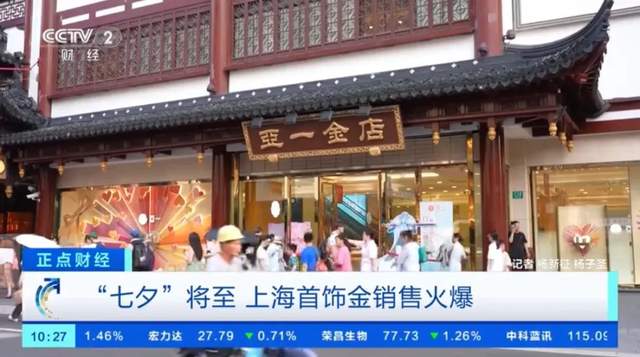 據媒體報道,七夕將近,恰逢金價下跌,近日黃金飾品店都迎來銷售高峯,上海豫園金店客流激增,北京SKP的老鋪黃金甚至要排隊一小時才能進店。