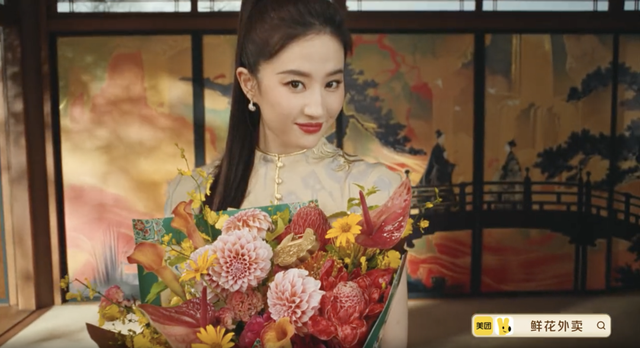 去年美團和劉亦菲推出的廣告片,就主打的“新中式”花束,在傳統文化層面構建認同感。
