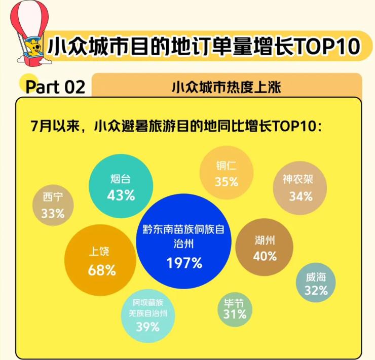 美團旅行發佈的《2025暑期熱點及趨勢報告》顯示,這個暑期,下沉市場熱度加速攀升,黔東南苗族侗族自治州、上饒、煙台、湖州及阿壩藏族羌族自治州等小眾目的地位列熱度增長最快的TOP5。