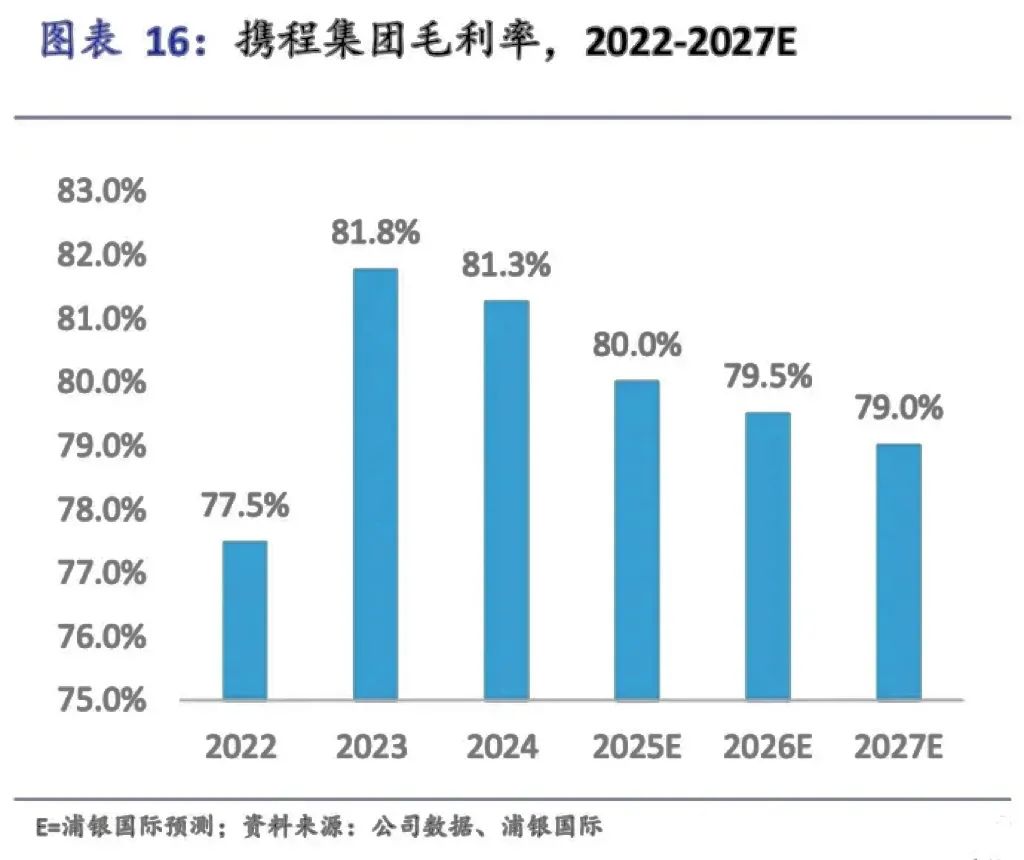 這也就造就了行業令局外人豔羨的“暴利”和“穩定”。譬如,攜程抽取的酒店佣金率,普遍在12%至20%,部分特殊酒店高達30%。而它的毛利率長期穩定在80%以上,甚至超過了奢侈品集團LVHM的67%。