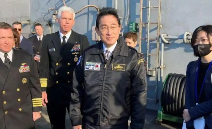 接着再説第三件事,這件事之前講過了:2021年11月6號,日本人在相模灣舉行了“國際觀艦式”,岸田文雄登上美國“里根”號核動力航母。