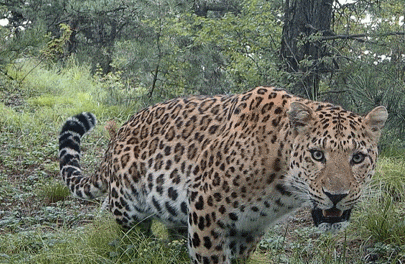 M16第一次聽見單反的快門聲,它先是抖了一下,然後迅速趴下身體緊貼地面,接着哈着氣(據説貓哈氣是在罵街)掉頭就跑……第二次被拍,它在相機前面玩起了木頭人,走一步看一會兒,最終它還是決定換條路走;第三次被拍……其實單反沒拍着它,因為它繞到後面把相機踹倒了(要不是附近的普通紅外相機拍到了它,都不知道嫌疑豹是誰)。