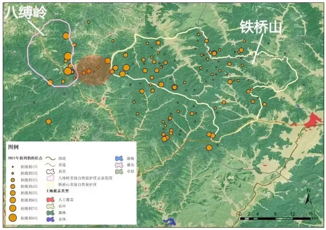 2022年,貓盟正式與慶城林場合作調查八縛嶺保護區及周邊地區的華北豹種羣調查,那年夏天,八縛嶺的第一批數據傳了回來,M16在那裏的出鏡率很高,它不僅活下來了,還在那裏安了家。