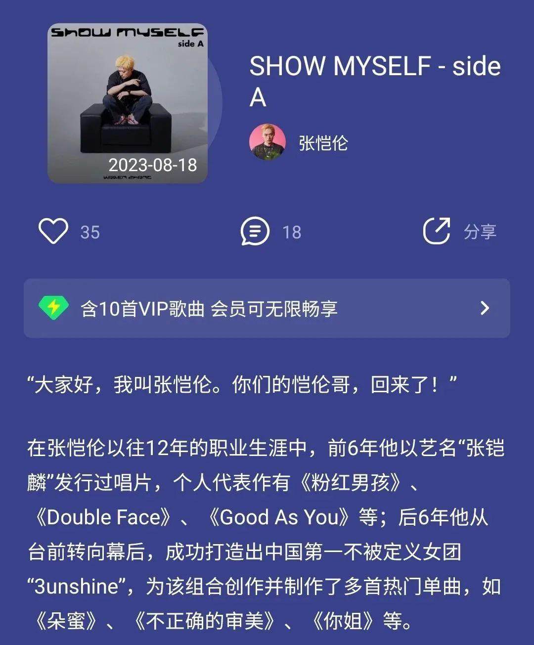 與3unshine解除合作關係後,張愷倫再次走到台前,發佈了一張專輯