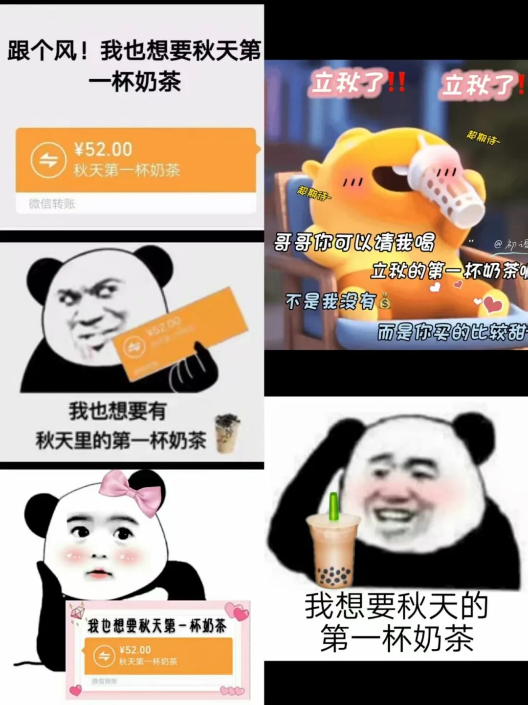 2020年秋分前後,一張微信聊天截圖在網上走紅:一名女生曬出男友轉來的52元紅包,備註寫着“秋天的第一杯奶茶”。簡單的一句話,本來只是情侶間的温情。