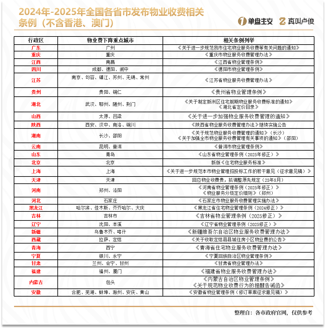 從2024年開始,32個省、自治區(不含港澳台),幾乎都出了關於規範物業費收取相關文件和條例