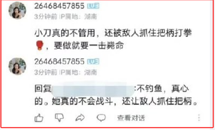 這已經發展成網絡恐怖主義了,但是平台還是不捨得封她的號,只是把她的帖子給屏蔽了。屏蔽後她不但不反思,反而引以為榮,繼續惡語相加。