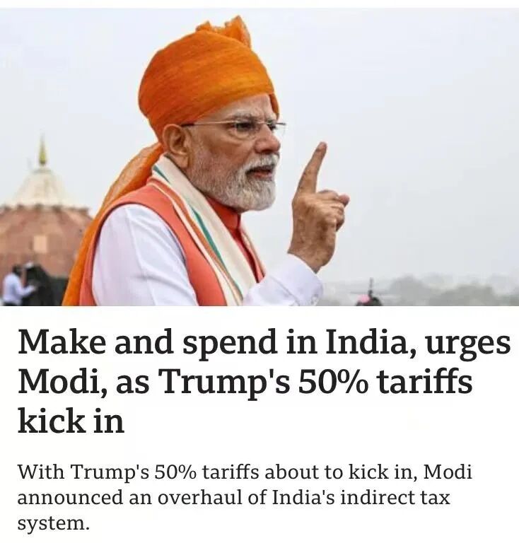川普年初給全球所有國家加關税的時候,印度還一度樂觀地認為只要美國對印度加徵的關税比其他製造業國家低(比如中國和越南),那麼印度就還有“比較優勢”,還能繼續搞出口貿易,甚至將其視為“發展機遇”,這下幻想直接破滅。而且吧,美國這次對印加税有兩個值得注意的地方——首先,新增25%懲罰性關税理由十分牽強,從俄羅斯進口能源的又不光是印度這一個國家,卻只針對了印度(説印度倒賣牟利);其次,美國對印度的這次加税態度非常堅決,不同於之前那種為了增加籌碼的“虛空造牌”,甚至都拒絕跟印度繼續談判……感覺倒像甩出了一封“分手信”,要跟印度劃清界限。