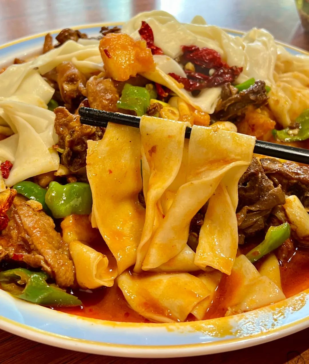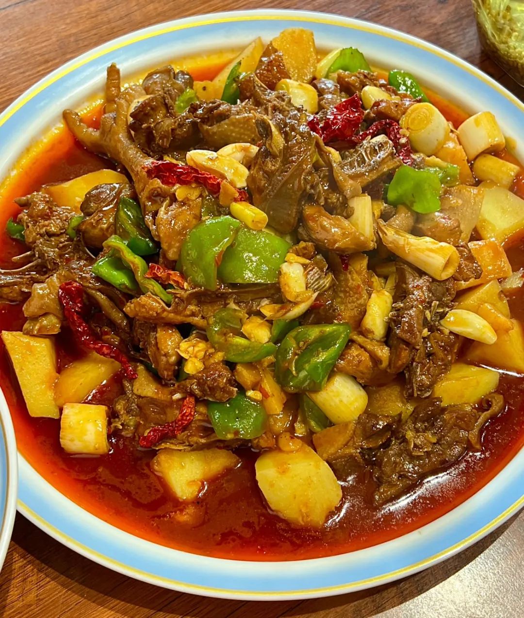 她總是説:“一定要用自家養的土雞,才能做出正宗的新疆味兒。”我看着她把雞塊炒得金黃,投入大把的線辣椒,最後加入滾刀塊的土豆。