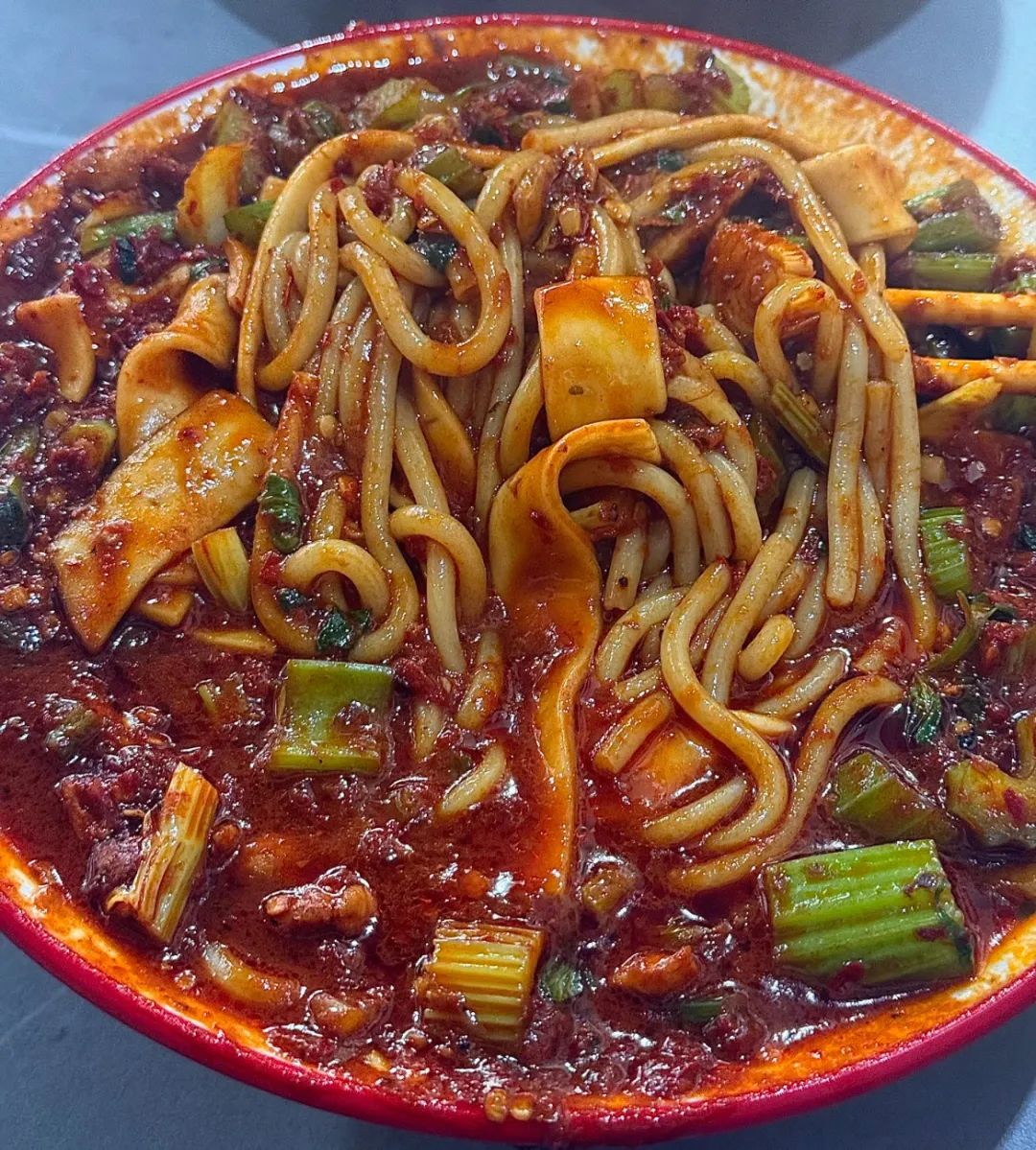 端上桌前,阿姨總會再添一勺紅亮的辣油,笑着説:“丫頭,多吃點!”辣得滿頭大汗,卻吃得心滿意足。