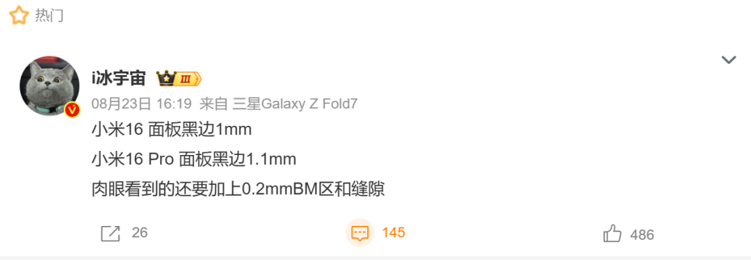 更火上澆油的是,你引以為傲的 1.2mm 超窄邊框,很有可能剛露頭就被小米 16 的 1mm 邊框給秒了。