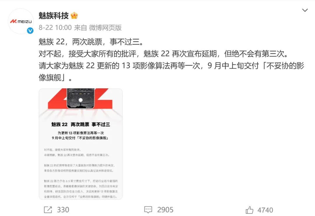 最後也算是意料之中的事情,沉默許久的官微在上週五終於承認魅族 22 還要再跳票,而這次跳票的理由是 “ 為了打磨更新的 13 項影像算法 ” 。