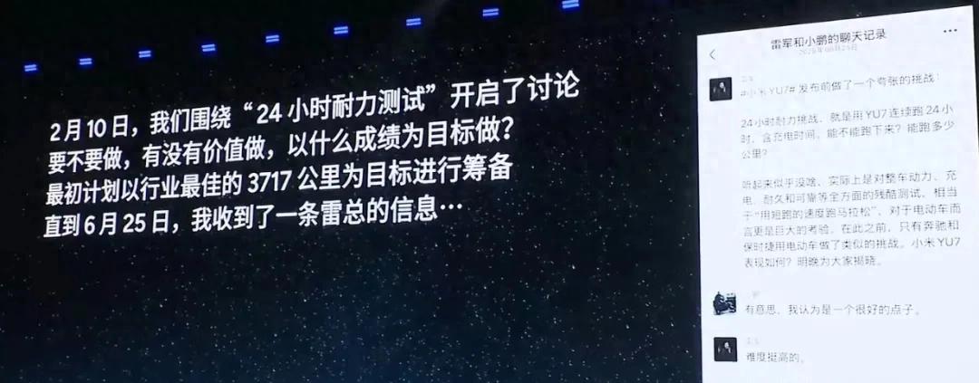 「我們圍繞24小時耐力測試開啓了討論要不要做,有沒有價值,以什麼成績為目標做,最初計劃以行業最佳的3717公里為目標進行籌備,直到6月25日,我們收到了一條雷總的信息……」