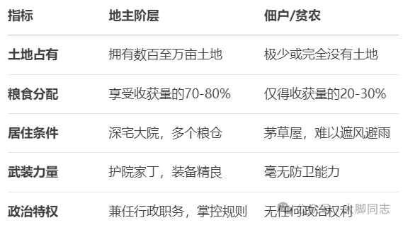 地主還通過控制婚姻來維持階級純潔性。大地主之間通過聯姻強化彼此之間的聯繫,形成一個鞏固的利益集團。相反,他們嚴格禁止子女與佃户通婚,以防財產外流。這種階級內婚制不僅保證了經濟資源的集中,也再生產了社會等級差異。
