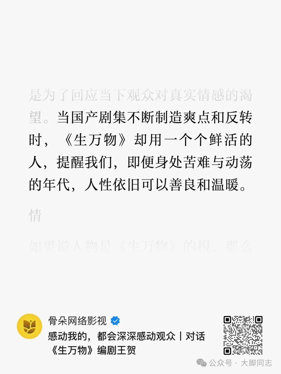 有娛樂媒體採訪《生萬物》的編劇,提到了“人性論”。