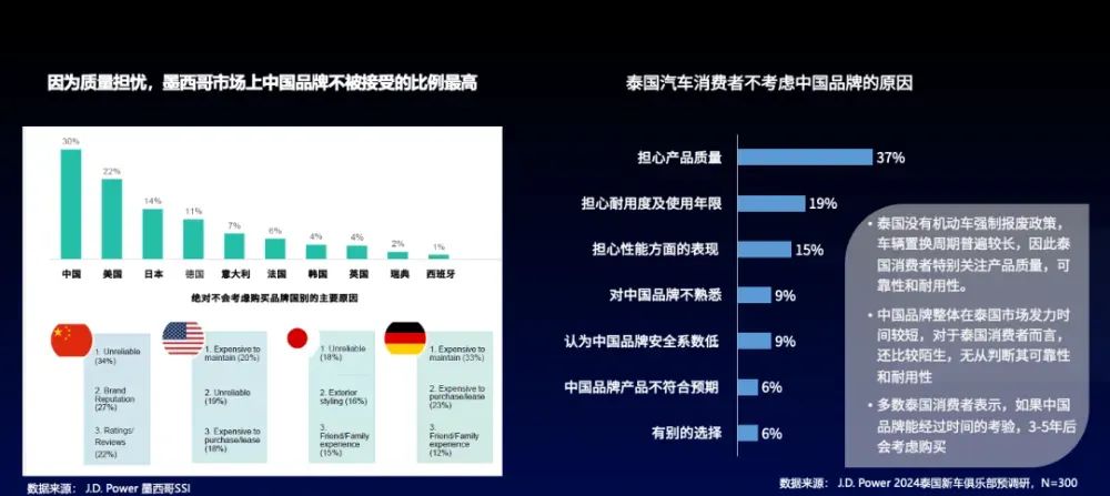但J.D.Power 2024泰國新車俱樂部預調研結果顯示,參與調研中消費者不考慮購買中國品牌,首要理由就是對產品質量感到擔憂。