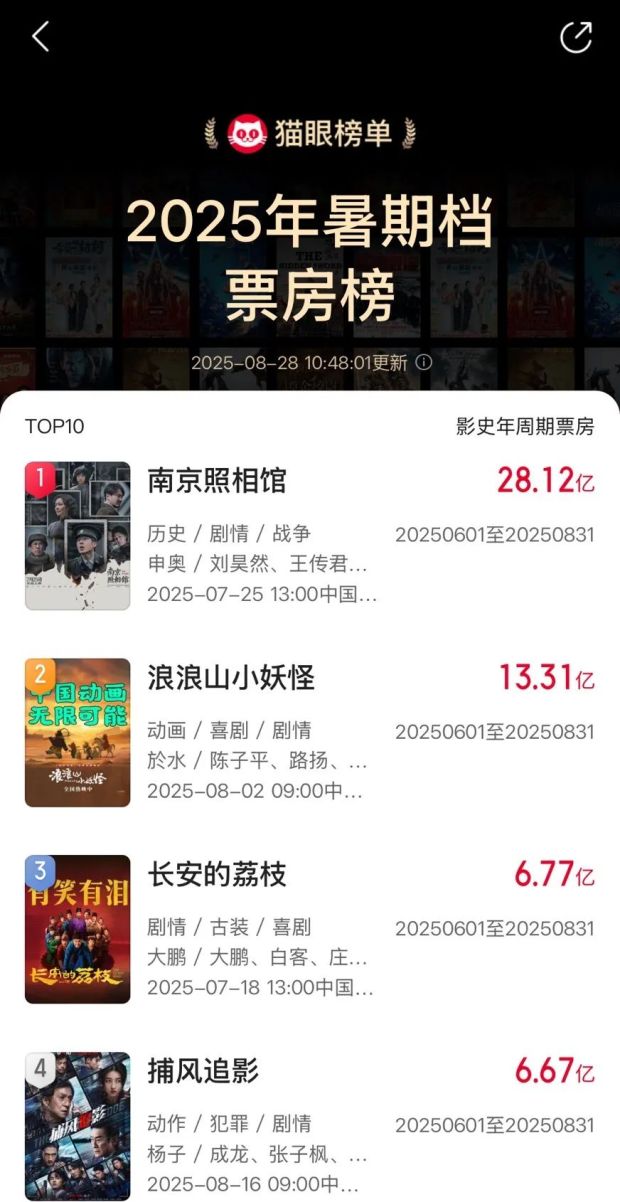 而隨着暑期檔收官,《南京照相館》以28億+票房穩居榜首,且上映1個月仍保持強勁長尾效應,所有人又幾乎都認定:就該是它、舍它其誰。倒不是“事後諸葛亮”,而是確實“它值得”。
