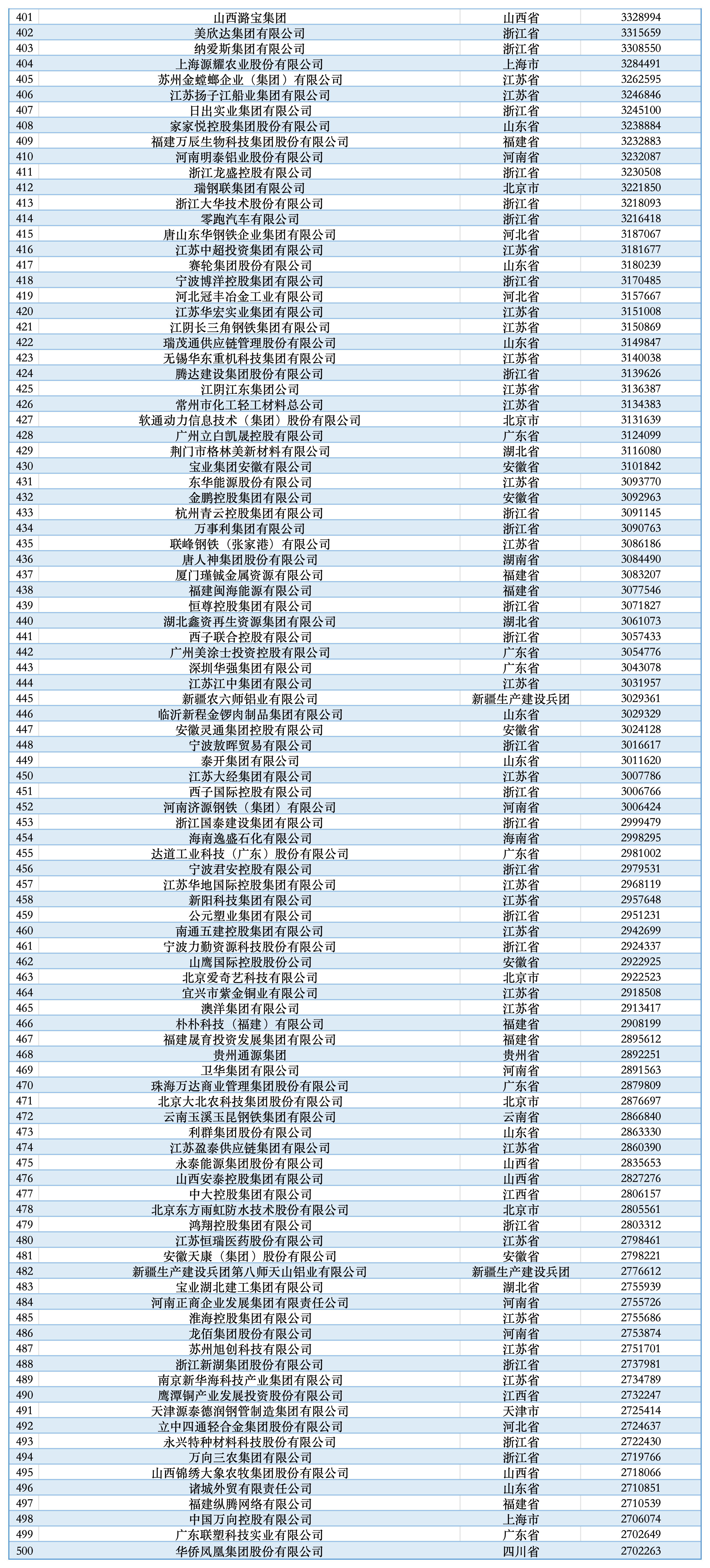 **三、發展方式持續轉變。**民營企業500強中,72.00%的企業屬第二產業、66.40%的企業為製造業。民營企業500強中的製造業企業營業收入總額為29.63萬億元,增長7.66%,佔500強比例為68.84%;資產總額為24.67萬億元,增長7.92%,佔500強比例為48.23%;淨利潤總額為0.96萬億元,增長1.20%,佔500強比例為53.21%;研發費用總額為0.80萬億元,增長7.54%,佔500強比例為71.31%。