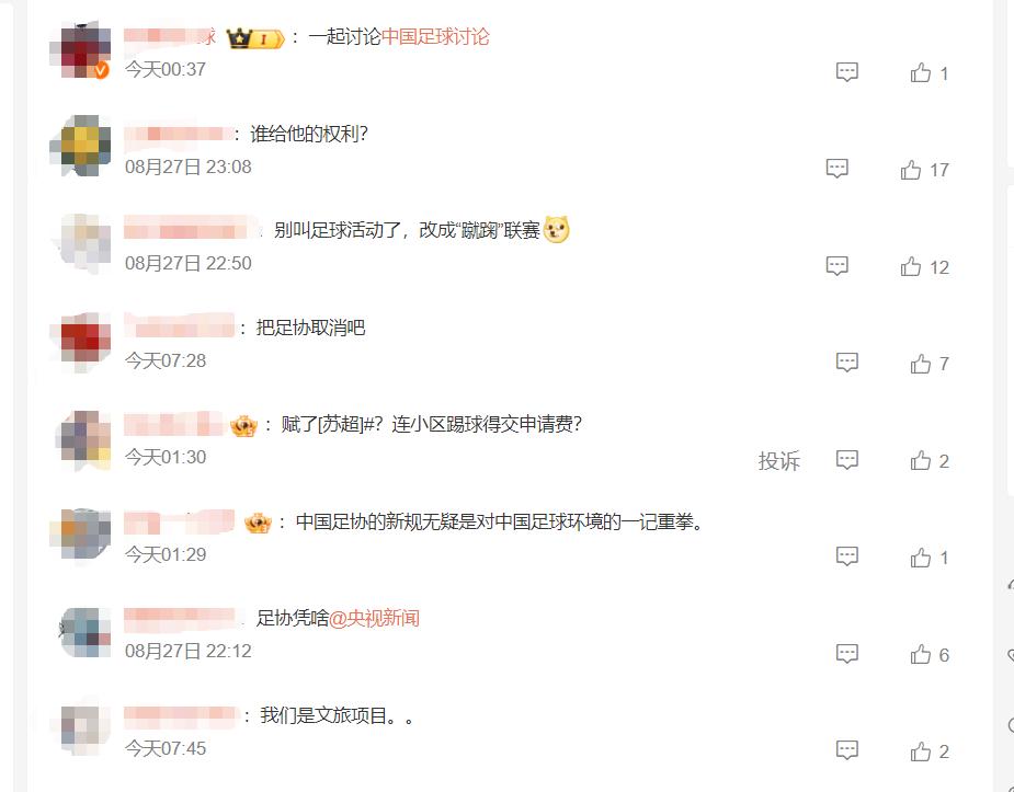 換句話來講,就是中國足協想要干涉羣眾足球活動,譬如蘇超、村超都搞不好要被針對。