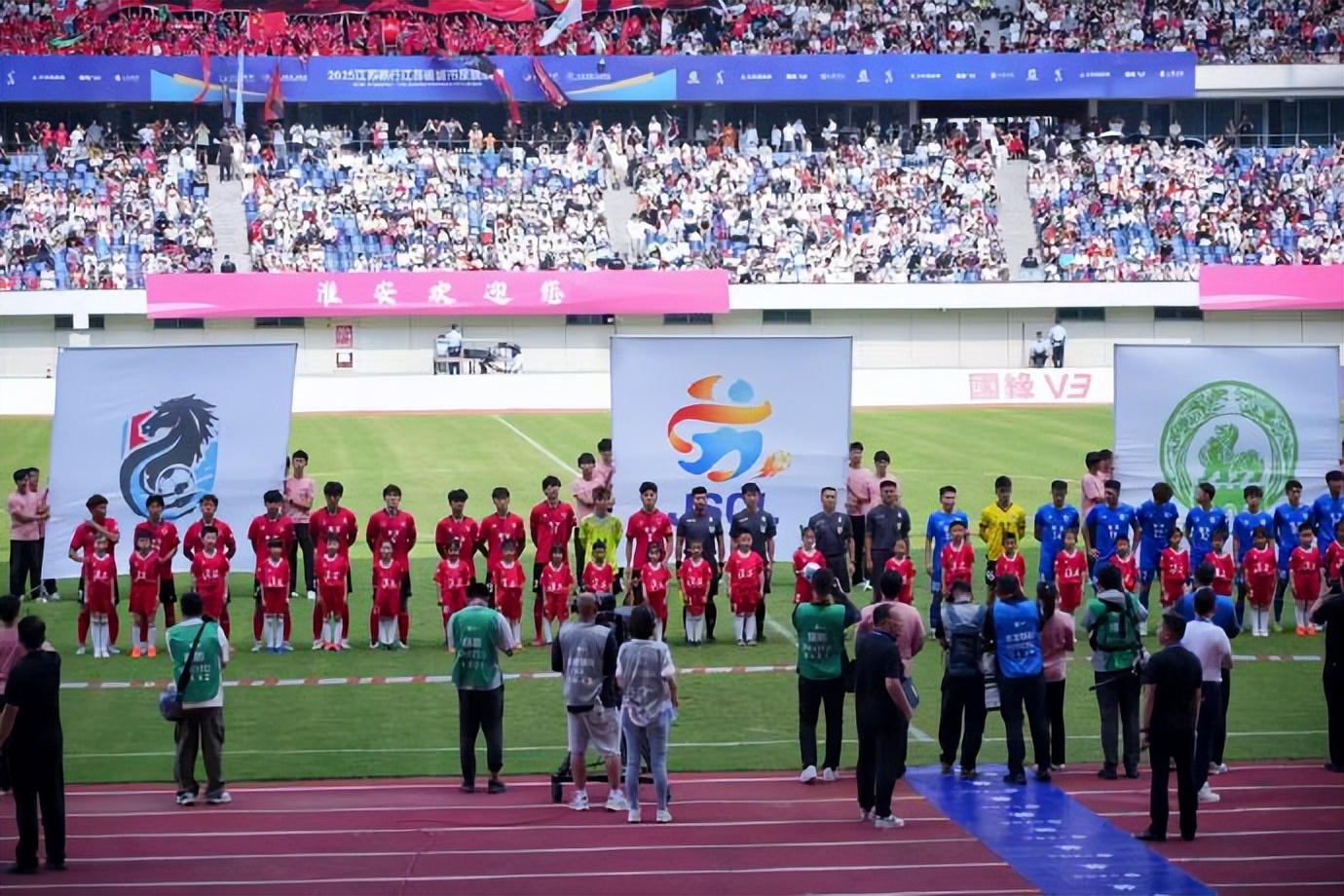 第一場比賽沒怎麼有人看,門票都是免費贈送,球場都沒有坐滿。當時就是隨便找了一個球場開踢,還是拉來了學生助威打氣。如果不是各地文旅輪流搞活,把蘇超熱度給搞起來,估計也不會辦的如此熱鬧。