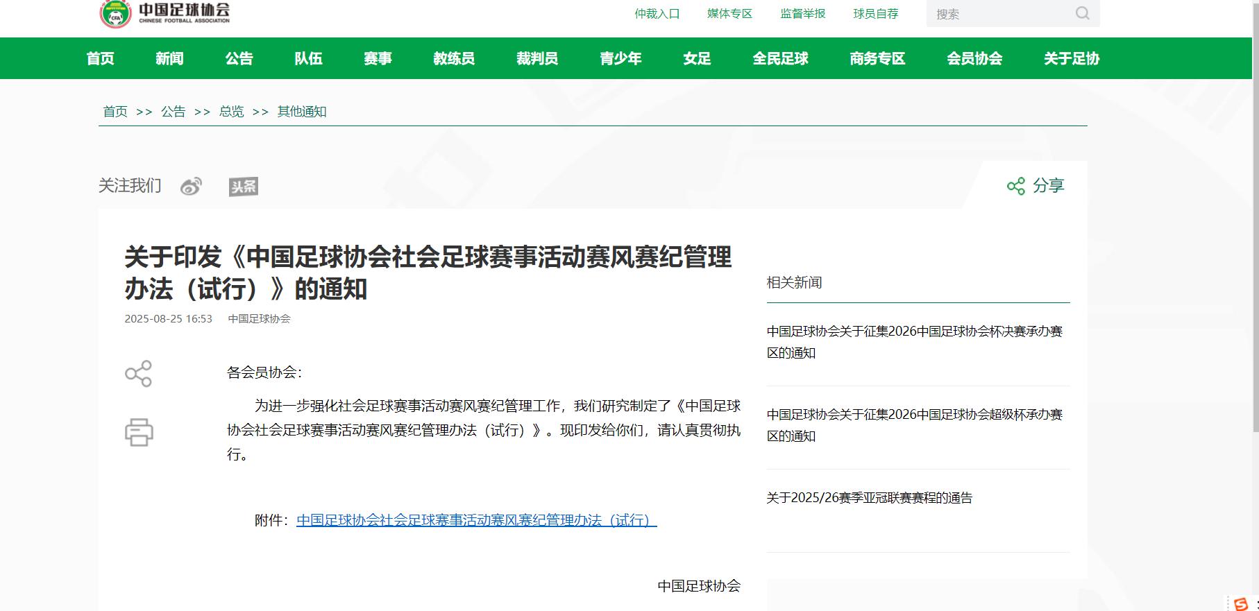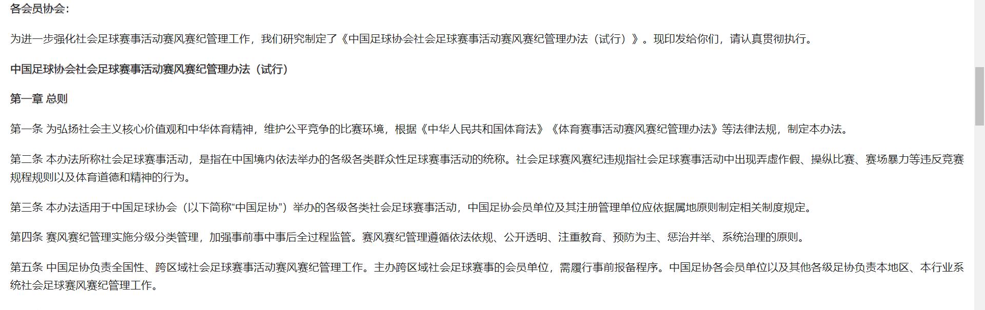 這次事情起因,就是8月25日,中國足協搞得《中國足球協會社會足球賽事活動賽風賽紀管理辦法(試行)》。估計也是怕輿論罵,特意加入“試行”二字,不行就是撤銷吧!