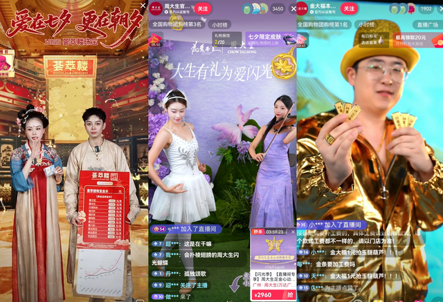 老鳳祥、周大生、週六福、夢金園、金大福、愛戀珠寶、薈萃樓、乾昌珠寶等知名連鎖品牌,通過專場直播、七夕特色團購品等,將線上熱度轉化為線下客流量,帶動黃金銷售提升的同時,迎來新一波消費興趣人羣。