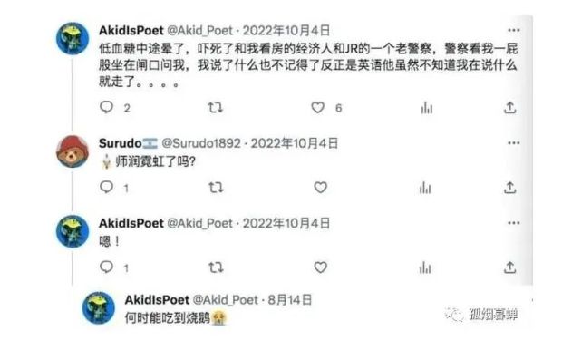 二則是這次參加了王懿葬禮的一位賈姓潤人,他的車擱了倆月才開去洗車店洗一次,洗的時候才發現已經受潮了。自己平時吃的也沒比帶給王懿的祭品強到哪兒去。為此甚至就連他自個兒都自嘲,自己在日本只能吃“社畜午餐”。