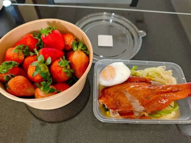 按照他的説法,雖説這外賣的燒鵝和草莓跟廣東和丹東的終究沒得比,但畢竟價錢擺在這兒,所以也沒啥好抱怨的。我看他發過來的啃鵝腿啃得滿嘴流油的照片,打字問他: