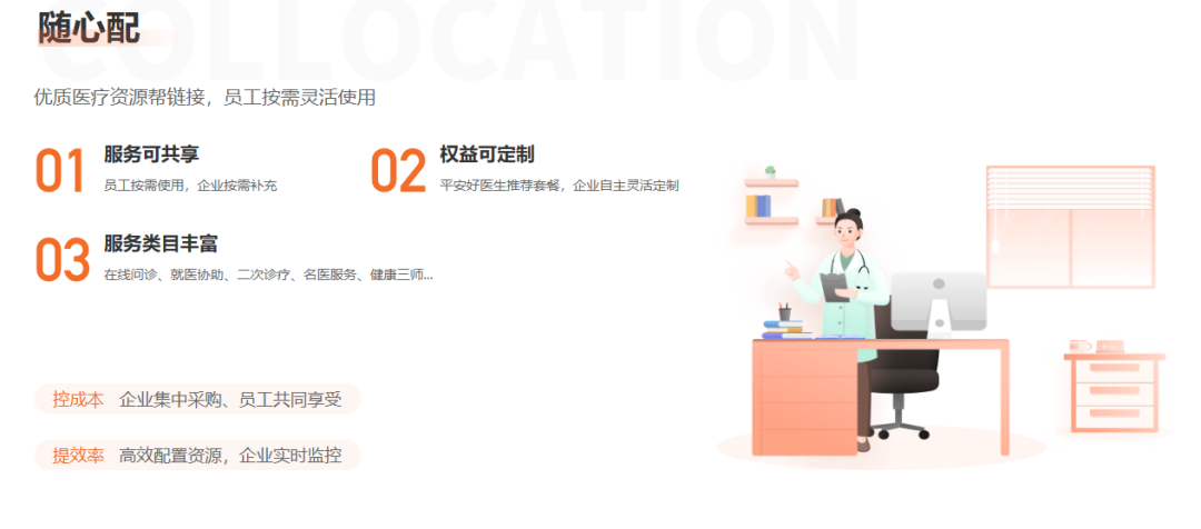 健康保障委託層面,企業可將員工健康管理任務統籌委託,平安好醫生則藉助供應鏈集採優勢,在提供標準化健康服務包的基礎上,結合員工需求補充定製化服務,充分滿足多元健康訴求,形成“保障+管理+服務”的一體化解決方案。