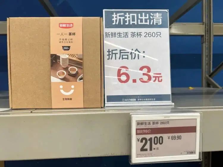 新鮮生活紙茶杯(260只裝)從原價69.9元降至6.3元;