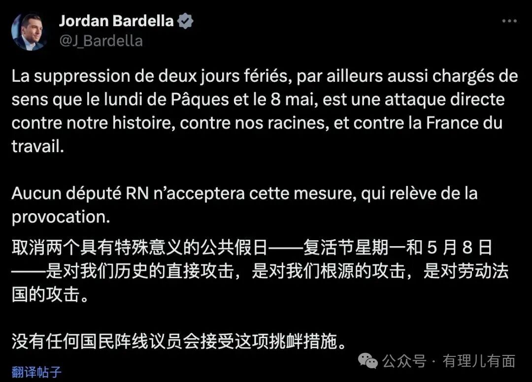 而這一切的源頭要追溯到今年7月——總理貝魯公佈的2026年預算計劃:削減438億歐元公共支出、取消復活節星期一和5月8日勝利日兩個假期、凍結社會福利與養老金增幅、裁撤3000個公共部門崗位……