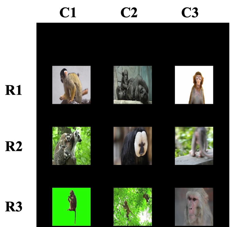 在實驗中,研究人員在每隻絨猴的籠子裏都放了一部iPad,上面安裝了實驗專用的短視頻軟件,會同時顯示9個不同非人靈長類動物的無聲視頻。當絨猴觸摸其中任意一個視頻時,其他視頻會消失,被點中的視頻會放大,視頻會發出靈長類動物的叫聲,持續5秒。