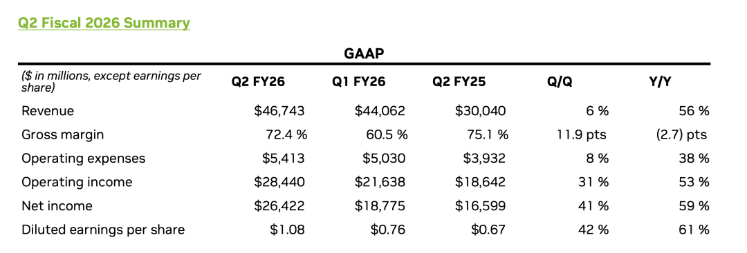 中國時間 8 月 28 日,英偉達發佈了 2026 財年第二季度財報。