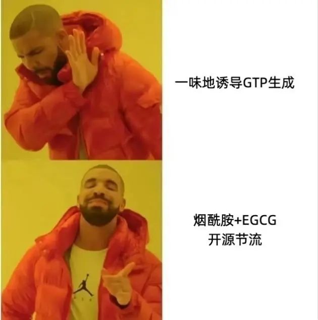 前面我們説,線粒體的TCA循環能夠合成GTP,而煙酰胺就是這個過程中的98號汽油:它是一種常用的NAD+前體,能夠有效激活TCA循環,直接促進GTP的生成。