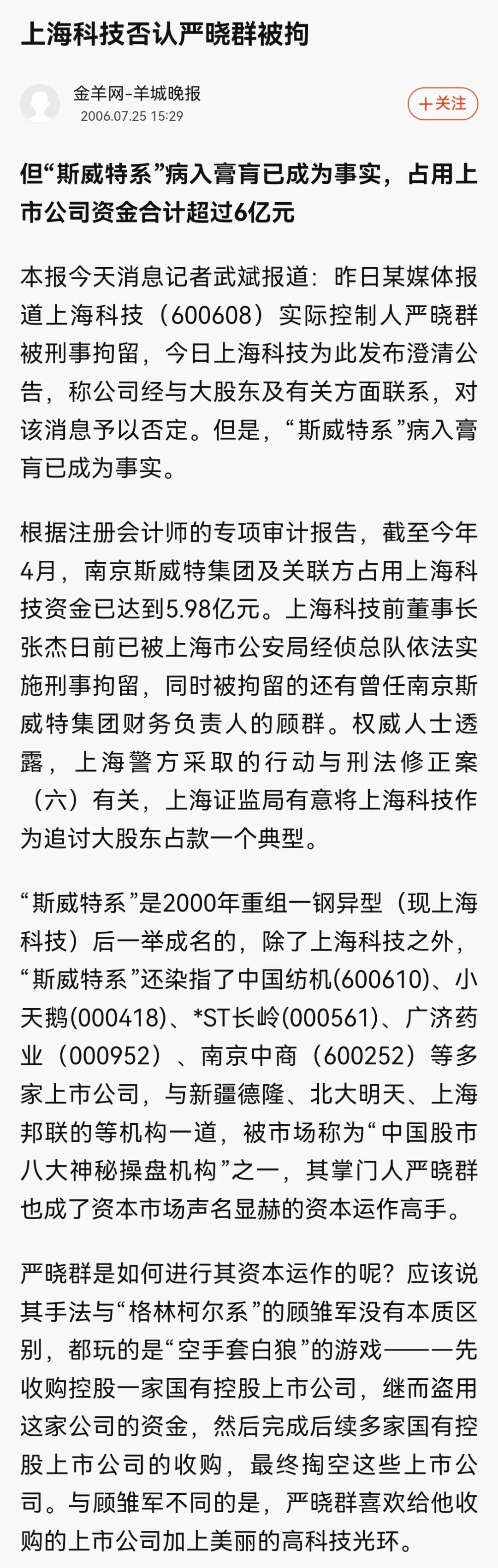 嚴老闆的資本遊戲結束得也很突然,2005年斯威特爆雷把他的大運一下給炸沒了。