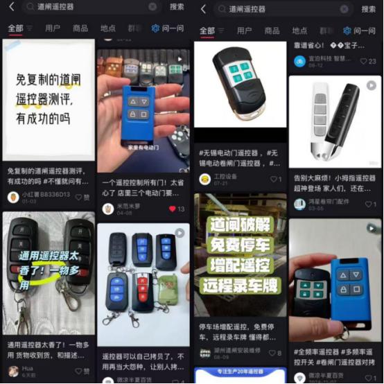 央視的鏡頭剛把“萬能道閘遙控器”拍進了違法名單,一個月過去,它卻依舊能在小紅書輕鬆被搜到購買並且伴隨着不少筆記介紹。