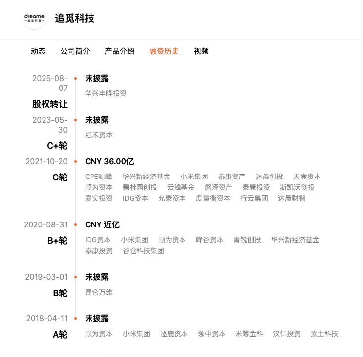 公開消息,小米通過旗下投資平台,例如順為資本等,參與了追覓科技多輪融資。