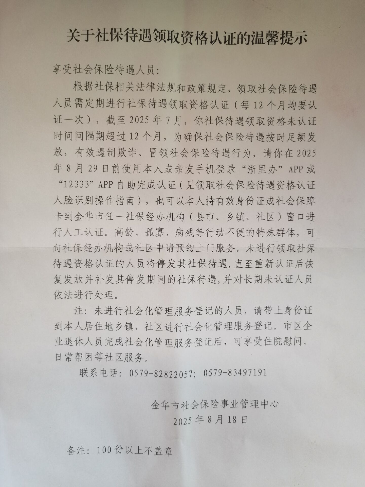 我一看,原來是催母親儘快完成“社保待遇認證”。信中提示説,截至2025年7月,我母親已經超過12個月未有社保待遇領取認證,如果8月29日還未完成這項認證,下月的養老金將會面臨“停發”。