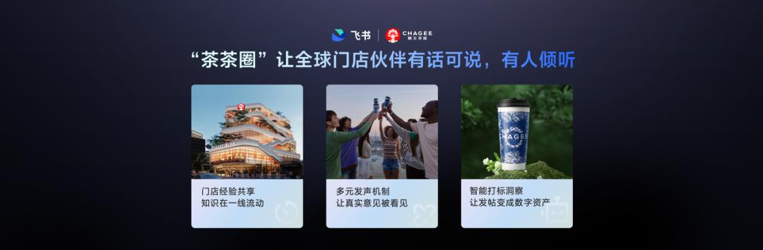 2022年,霸王茶姬開始與飛書合作,藉助飛書構建夥伴互動平台“茶茶圈”。“茶茶圈”就像是霸王茶姬自己的“貼吧”,支持夥伴圍繞運營、服務、產品建議等內容自主發帖,已累計沉澱9萬+條真實聲音,日活躍用户達2萬。