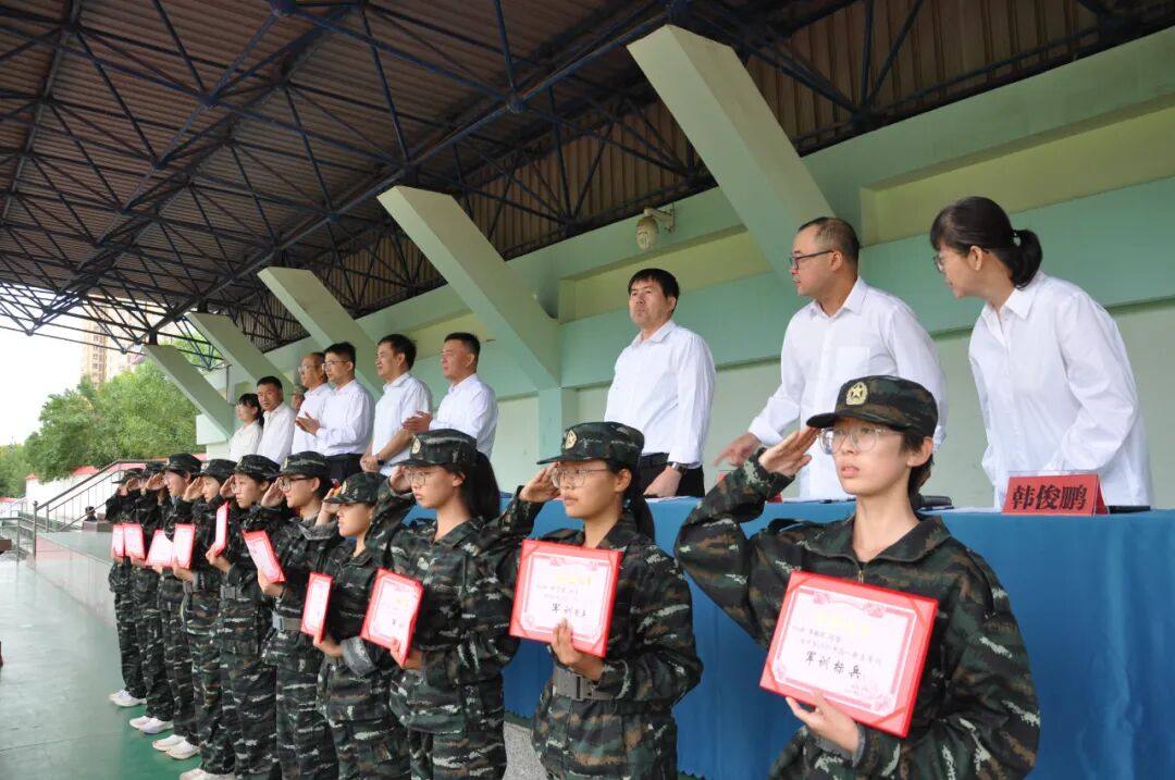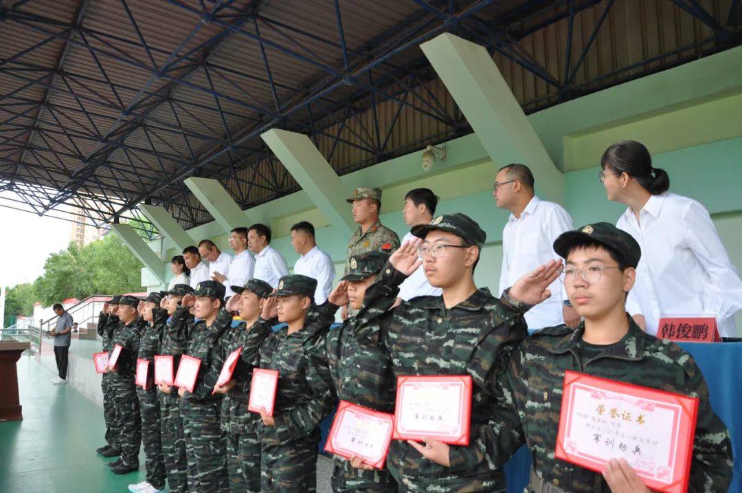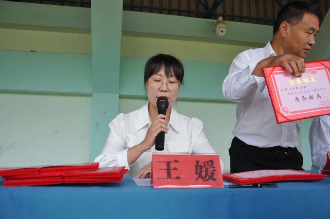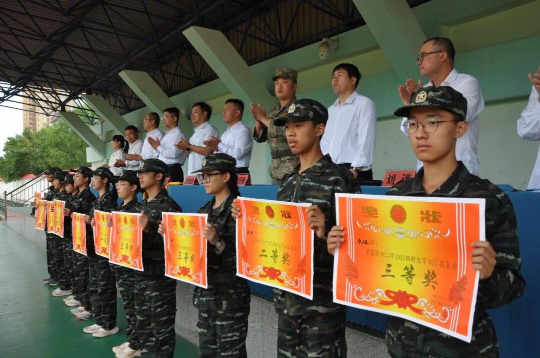 會操表演結束後,副校長張國勇、教務處負責人、高一年級組主任韓俊鵬、教務處副主任、高一年級副主任王媛代表學校宣讀了2025級軍訓標兵、內務標兵、文明宿舍、軍訓成果展示優勝班級名單。隨後,與會領導為獲獎班級及個人頒獎,並號召全體學生以這次軍訓為開端,將軍訓中的好習慣堅持下去,將軍訓中的好作風堅持下去。