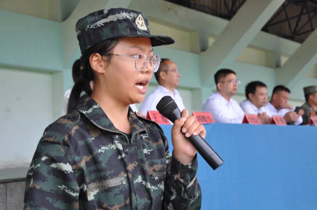 406班郝芷萱同學作為學生代表,分享了軍訓感悟。她講述了軍訓中的疲憊與堅持、挫折與成長,引發同學們共鳴,讓大家感受到軍訓帶來的蜕變。