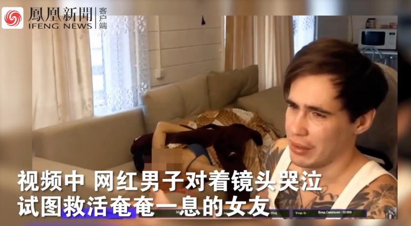 即便是發現女友死亡,他仍然沒有停止直播,而是選擇面對鏡頭哭泣。