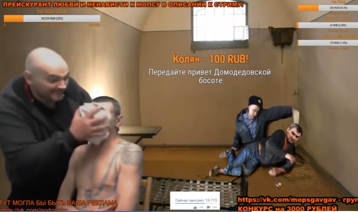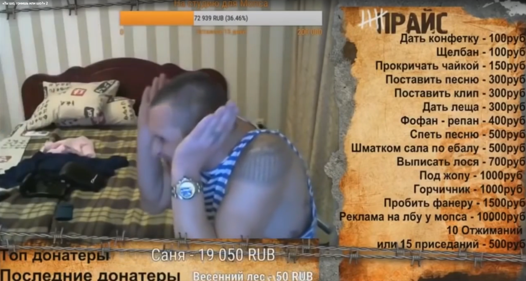 2016 年,兩位前囚犯創建了頻道,Мопс дядя Пес,在這裏,胖主播扮演施害者,瘦主播扮演受害者,他們創建了一個虐待價格表,允許觀眾們付費點播。