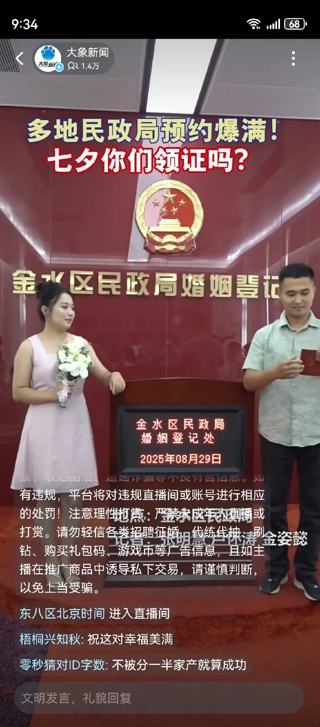 今日七夕,多地民政局當天結婚登記已約滿,你結婚登記會選節日嗎?_風聞