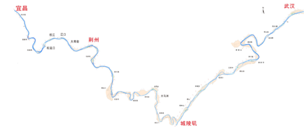 從地圖上看,長江宜昌至武漢段全長約612.5公里,約佔長江干線航道的1/5,整體呈現V字型,以岳陽城陵磯為交點,一邊連着荊江,一邊連着長江城陵磯至武漢段。該航道蜿蜒曲折、灘多水淺,僅能滿足5000噸級船舶季節性通航,枯水期甚至只能滿足3000噸級。