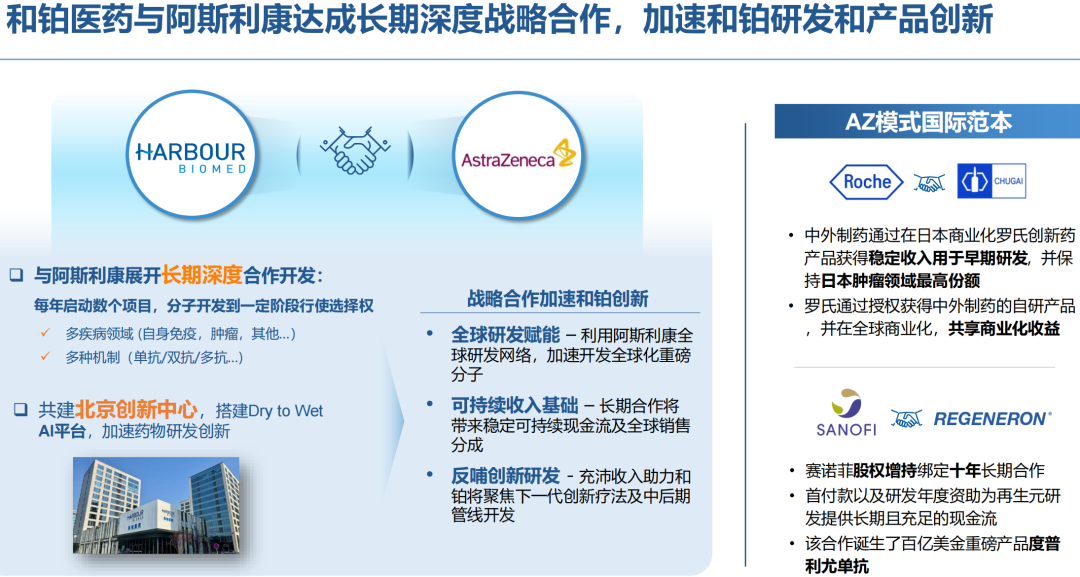 更典型的則是其今年與阿斯利康的合作,不僅規模足夠大,週期更是最長可達十年;阿斯利康還出資1億美元入股和鉑醫藥,未來雙方還將在北京共建創新中心。隨着合作越來越深度,戰略價值自然越來越高。
