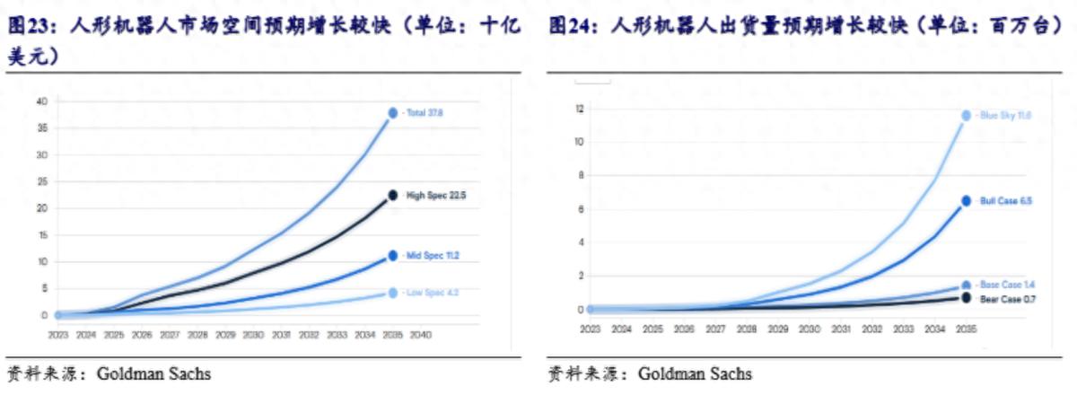 從出貨量來看,預測同樣樂觀。高盛預計,到2035年,人形機器人的出貨量將超過70萬台。在最樂觀的情況下,出貨量甚至可能達到1160萬台。
