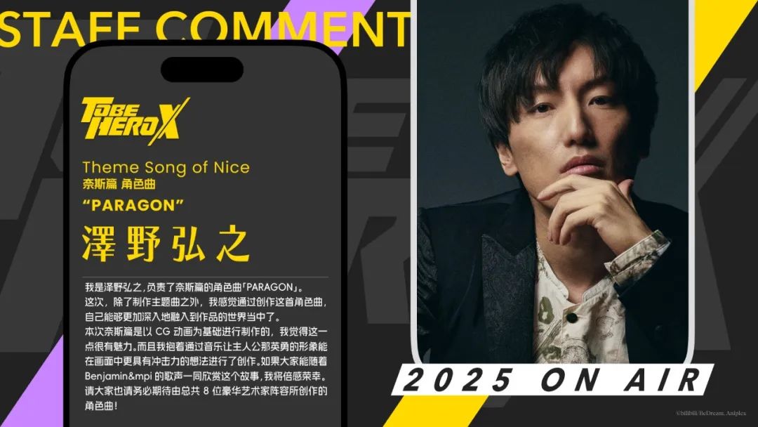 Aniplex邀請到曾為《機動戰士高達UC》《罪惡王冠》等經典作品配樂的澤野弘之,負責《凸變英雄X》OST,以至於旋律一起,標誌性的音樂風格便讓動畫愛好者瞬間感應到“是他的作品”。不僅如此,動畫還集合了多位日本知名音樂人,給每位英雄打造專屬主題曲,進一步概括、完善角色的個人故事線,與動畫內容本身密切配合。
