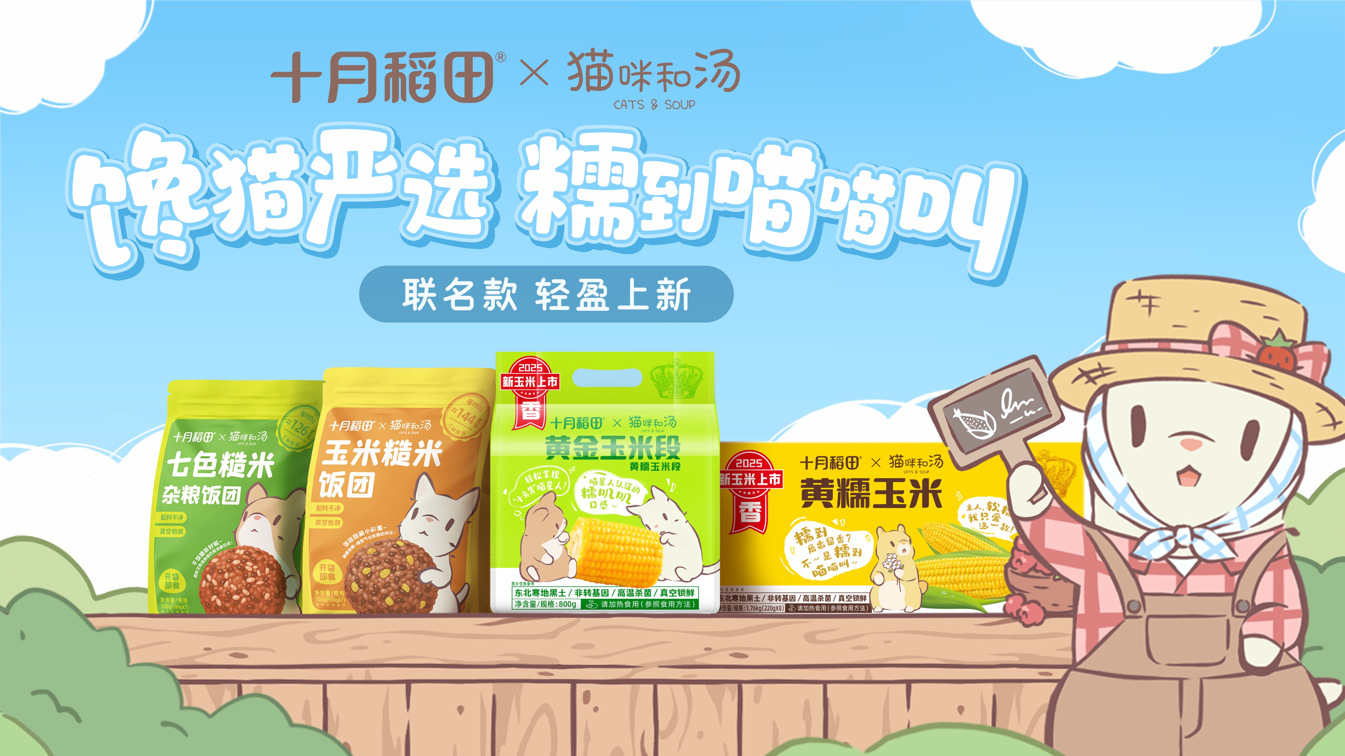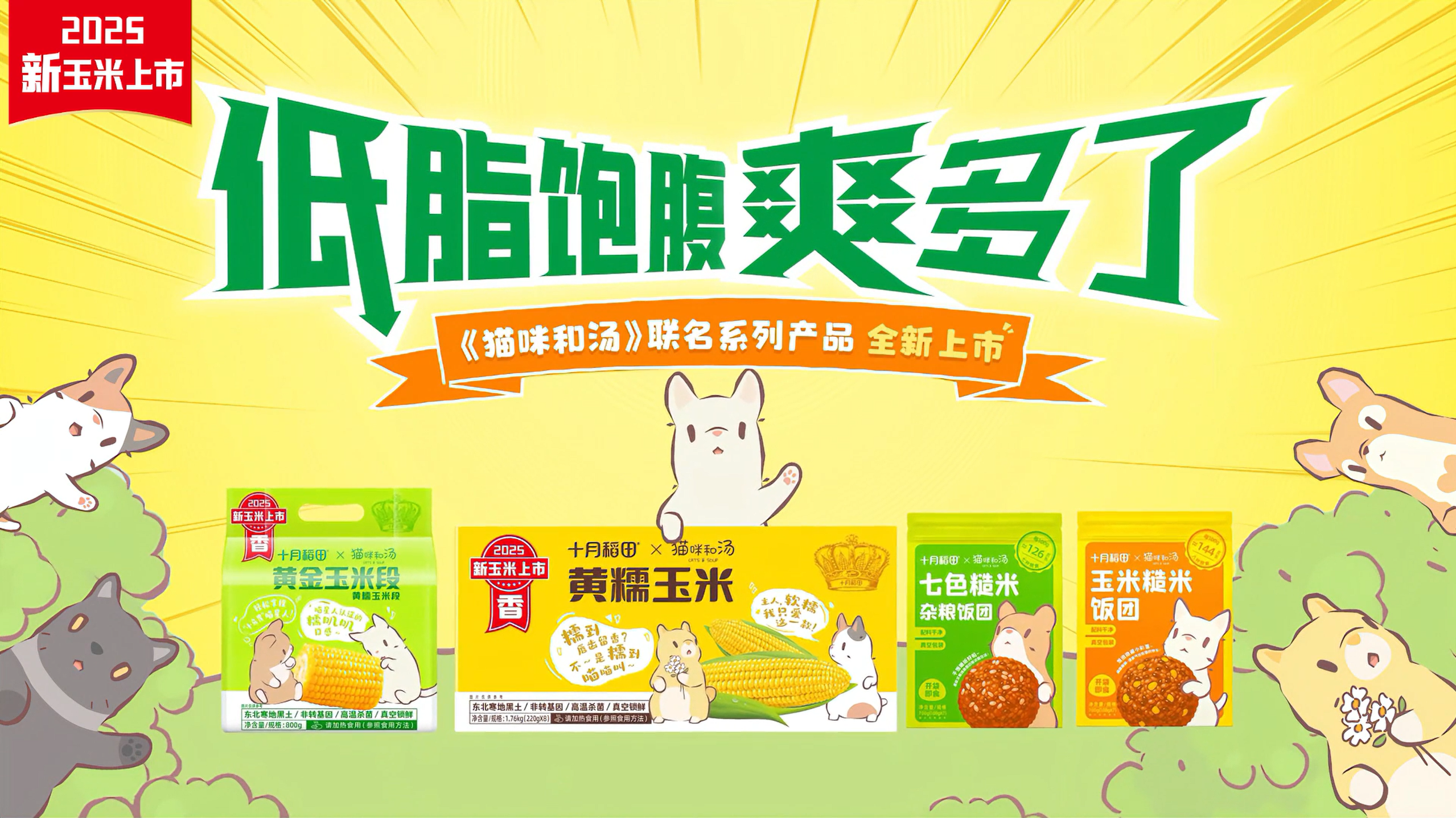 2025年新玉米上市期間,十月稻田不僅走進了機場,還走進了全球7000萬遊戲玩家的手中。8月11日,十月稻田官宣與治癒系遊戲《貓咪和湯》IP聯名,當糯到拉絲的黃金玉米成為貓咪嚴選的美食,次元壁就此被打破。