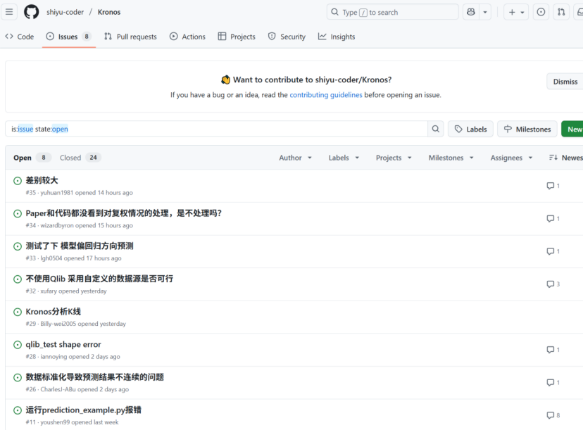 進一步探究該項目的issue區可以發現,使用者普遍對其分析K線得出的結果表示不滿意。這就引出了一個更深層次的矛盾:Kronos模型明明是基於歷史K線數據進行訓練的,為何其預測結果卻無法讓使用者信服,甚至被認為是無效的呢?